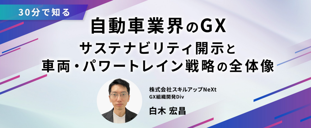 本セミナーでは、サステナビリティ情報開示の重要性と世界・日本の自動車業界を取り巻く構造的な状況を整理し、電気自動車(BEV)、燃料電池車(FCV)、内燃機関(ICE)など、カーボンニュートラルに向けたパワートレイン戦略の具体的な着目点について、勉強会形式でわかりやすく解説します。